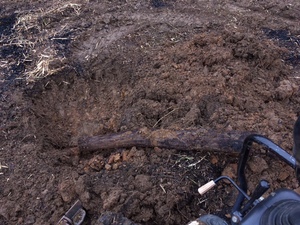 木が埋められていました。耕地整理の際に面倒なので埋めたのでしょうかね。トラクターの刃では届かない深さなので、かなり確信犯的な作業ですね。