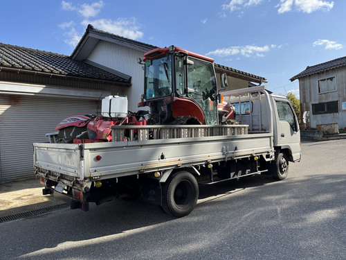 それから山の田んぼに向かうためにトラクターをトラックに乗せ替えて