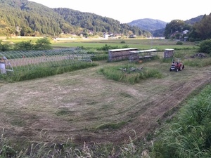 写真では伝わらないかもしれませんが、トラクターのボンネットより草の方が高さがあって開拓感満載の作業です。作業中に振り返ると
