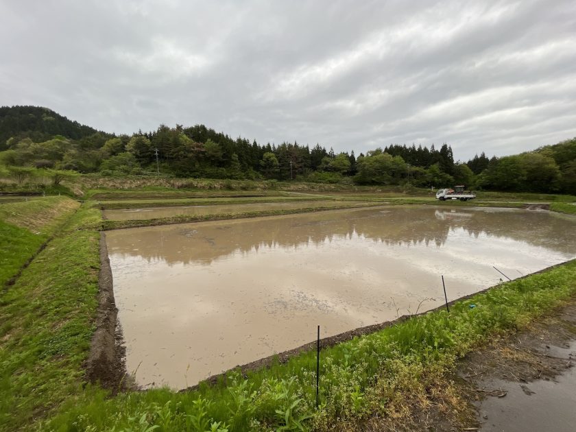 一昨日、地震のあった日の朝、 荒おこししてあった山の田んぼに